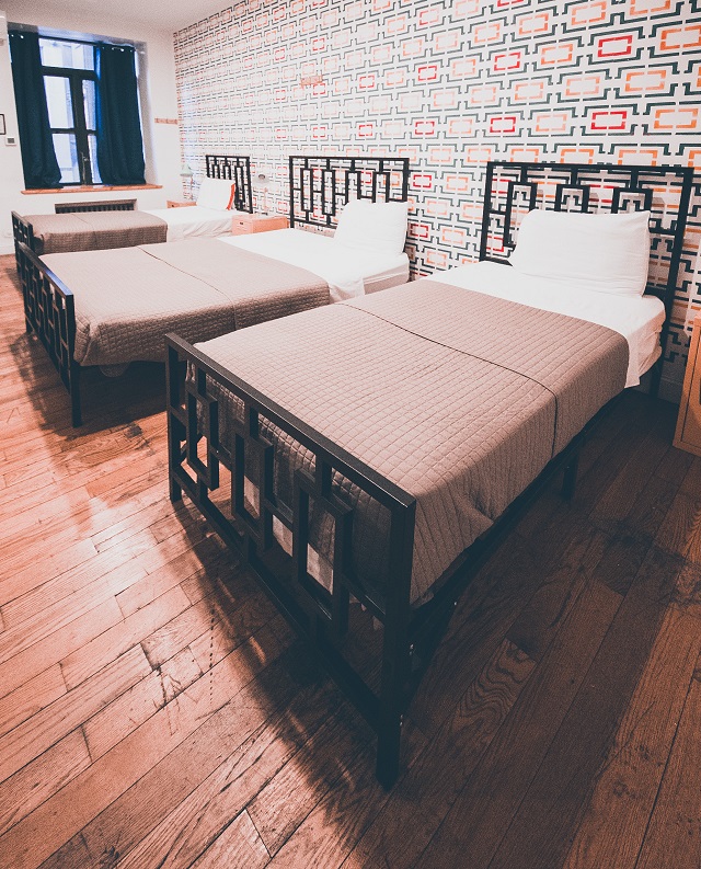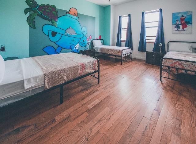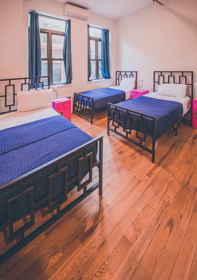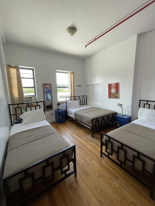 NY Moore Hostel has 3 Bed Private Rooms each equipped with a private bathroom. The rooms are spacious loft style spaces with high ceilings and ample sunlight. Beds range in size from Twin to Queen with adequate space for each individual.